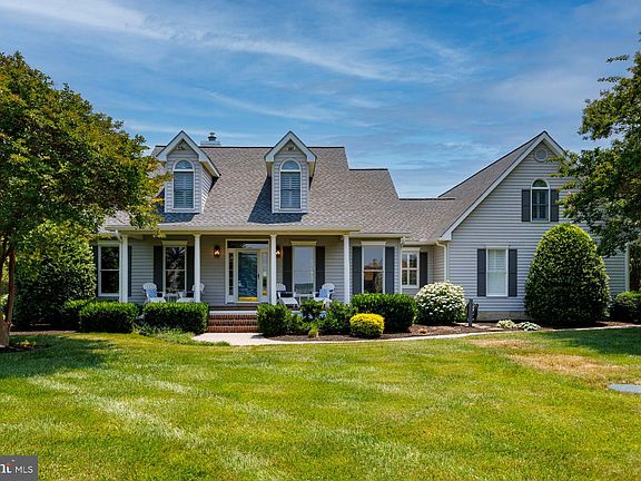 Exceptional 3 BR/ 2.5BA home built in 2001 and sited on 3.25 acres offering fantastic views of Harris Creek. Light-filled and open, this lovely home boasts cathedral ceilings and hardwood floors, gourmet kitchen with stainless appliances, office/den, separate dining room, and a large great room with gas fireplace opening to the beautiful covered patio. The primary suite offers complete privacy and the primary bath has double vanities, soaking tub, glass-enclosed shower, and walk-in closet. In addition are 2 guest bedrooms on the main level and a large bonus room upstairs which would make a great recreation room or bunk room. The back yard is gorgeous with its incredible 20 x 40 heated, saltwater gunite pool with waterfall, and attached heated spa! The outdoor kitchen with grill and refrigerator is conveniently located and surrounded by the large patio which is great for entertaining. There is a 2-car attached garage plus the large outbuilding with HVAC and 2 open sheds. Down the street is the community's shared dock and picnic area on Harris Creek and kayaks can be stored all year. The community fee also includes arranging for and mosquito-spraying. Public sewer has also been approved for Indian Point West!