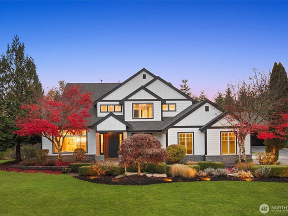 Discover an unparalleled custom estate in the coveted gated Ridge at Lake Sawyer. This true one-of-a-kind residence offers 4 beds, 4.25 baths and 5,210 sqft on 1.9 acres, complete with a shop and uncompromising high-end finishes throughout. Enter through an 8' pivot door into a chef’s kitchen with custom wood cabinetry, Thermador & Signature stainless appliances, Taj Mahal quartzite countertops, backsplash and hood, and an oversized waterfall island. The stunning primary suite is a spa retreat with dual vanities, freestanding tub, custom tile shower and bespoke walk-in closet. Italian plaster fireplaces, LED lighting, chandeliers, bi-folding living room door, and more. Lower level with second kitchen and living area. A rare offering!