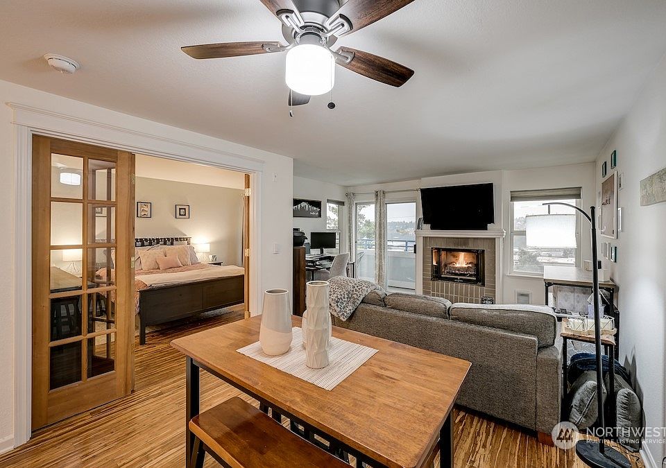 This thoughtfully laid out and tastefully updated Queen Anne gem has everything you need! Home features French doors that lead into a large bedroom with en-suite bath, beautiful bamboo floors, an updated kitchen with new counters and appliances. Sizeable pantry with full size W/D. Walk out balcony with breathtaking mountain and sound views, secured building with assigned parking, dedicated storage unit and many more community amenities. Fantastic location within walking distance to Expedia, Whole Foods, Starbucks, Interbay Golf Course, shops, restaurants. No Rental Cap! Low HOA Dues!