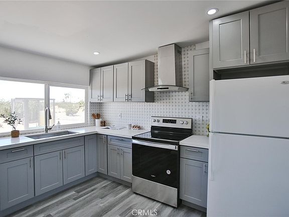Charming 2 bedroom, 1.5 bath Desert Oasis on 5 Acres! Discover the perfect desert getaway in this fully remodeled home, ideal for first-time buyers or as a vacation rental or the perfect artist studio or a secluded place to write that novel.. Set on 5 beautiful view acres this property features new laminate flooring throughout, sleek stainless steel stove and range hood, quartz counters, tiled shower and bath surround, fresh interior and exterior paint. Enjoy starry nights and panoramic views while reveling in privacy and tranquility. Conveniently close to Joshua Tree National Park, and just a short drive to stores and restaurants and all the cool desert attractions we are so well known for. Call today for your private showing.