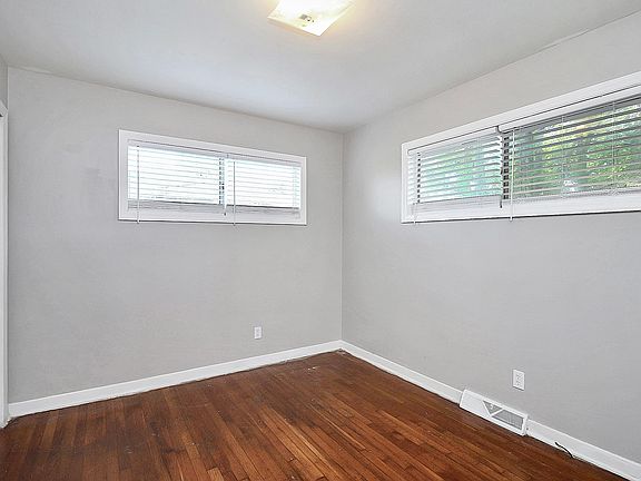 Updated bathroomNatural lightHardwood floorsSpacious bedroomsGrey tile floorsSleek blue cabinetsUpdated kitchen