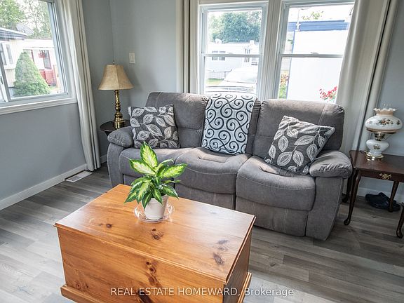 Fantastic country-like locale in Keene, minutes to Peterborough and all amenities. Situated in a lovely, quiet and friendly park. This is an opportunity to live your life in a low maintenance, relaxed and affordable environment and in a park-like setting! This wonderful open concept home is ready for you to move right in! Pride of ownership is evident in this clean and updated abode. Newer laminate throughout, newer white kitchen! Generous Primary bedroom with a walk in closet! Spacious family/sunroom room with sliding doors to the porch could be easily used as a second bedroom! Large bathroom with ensuite laundry! Breezy front porch for those relaxed summer afternoons/ evenings.Single car parking.Monthly fees include: lot rent, water & sewer, taxes, and park maintenance. Don't wait, this wonderful lifestyle awaits your arrival! (Can be sold furnished)