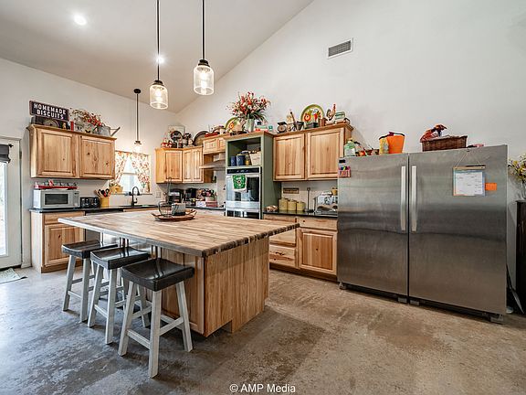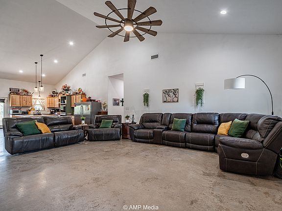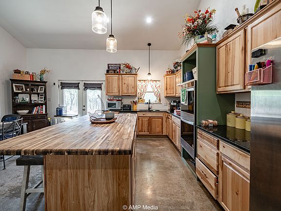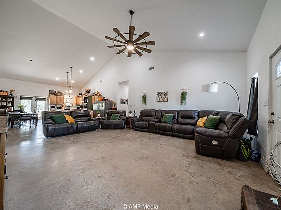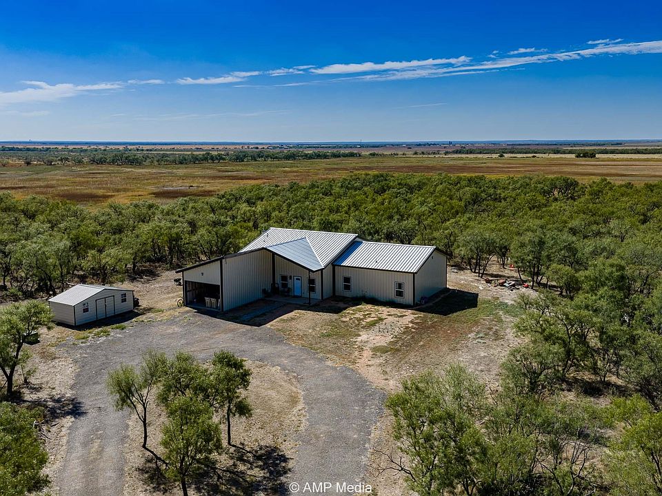 Built in 2022, this spacious and stylish metal frame home offers the perfect blend of rural tranquility and modern comfort. Nestled on 9.63 acres of mesquite-dotted pasture, this 5-bedroom, 3-bathroom home is ideal for families, entertaining, or anyone looking to stretch out and enjoy wide open Texas skies — all less than 5 minutes from downtown Hamlin. Step inside to an open concept living space highlighted by soaring cathedral ceilings, concrete floors, and abundant natural light. The heart of the home is a stunning kitchen featuring a massive island, ideal for entertaining, meal prep, or gathering with friends and family. Each of the five bedrooms offers generous space and 10-foot ceilings, while the three full bathrooms are modern and well-appointed. Covered porches at both the front and back of the home create the perfect spots for relaxing with a cup of coffee or watching the sunset.