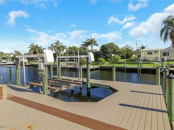 NEW ROOF 2023, NEW PICTURE WINDOW POOL CAGE 2023, POOL HEATER 2023, UTILITIES IN AND PAID IN FULL! Direct Gulf Access Southern Rear Exposure pool home is literally minutes from the river. 3 bedroom, 2.5 bath, 2 car garage, perfect for both relaxation and entertainment. Large lanai with heated salt water pool is the perfect place to enjoy the weather and entertain family and friends, over looks the direct access canal (NO BRIDGES) and 10k boat lift and Trex Captain’s walk. This well maintained home has updates plumbing, 200 amp breaker box, A/C, roof, Impact Windows – even the very expensive pocketing sliding glass doors to the lanai/pool area! The Southern Rear Exposure means your pool is always in the sun, looking glittery and beautiful. Thoughtful cement side walk leads from the pool cage to the boat dock. Inside the home is new paint and carpet, updated lighting, and beautiful plantation shutters throughout the home. Updated kitchen features granite counters, classic white cabinets, and upgraded stainless appliance package. The split floor plan means the Owner’s suite and guest wing are on opposite sides of the home, ensuring privacy and comfort. Outside you’ll find mature tropical landscaping, concrete curbing around flower beads, automatic irrigation system, and mature and established lawn. The upgraded circular driveway ads to the curb appeal and convenience of guests.