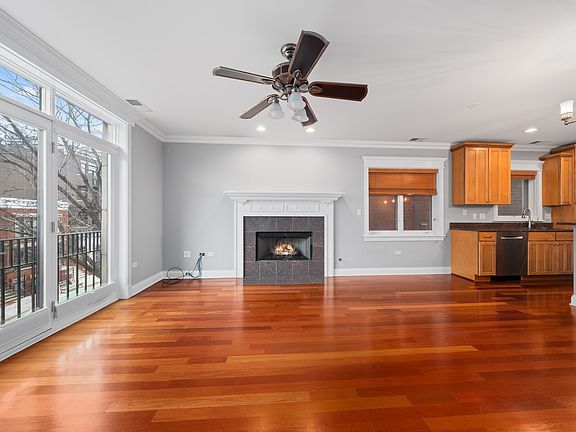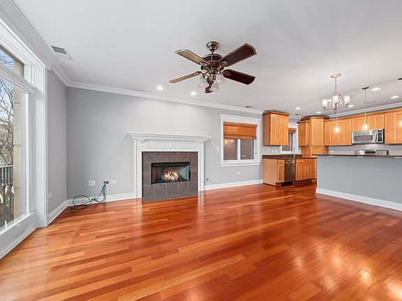 Beautifully updated 3-bedroom, 2-bath condo in the heart of Roscoe Village, offering a timeless blend of comfort, character, and unbeatable convenience. This bright and spacious home features Brazilian cherry hardwood floors, crown molding, a gas fireplace, and an open kitchen with 42" shaker-style cabinetry, granite countertops, stainless steel appliances, and a generous island perfect for cooking and entertaining. The primary suite includes a honed marble bath with a separate whirlpool tub and steam shower, while two additional bedrooms provide flexibility for guests, an office, or a nursery. A laundry closet with a new washer/dryer (2022) adds everyday ease. Important building updates include a newer roof (2017), split-face block sealing (Feb 2024), phone-based intercom system (2023), and newer mechanicals including furnace, AC condenser, and hot water heater (2022). A large private storage area and covered parking space are included. The location is exceptional-just steps from Belmont and Western Avenues with seamless access to the 77 (Belmont), 49 (Western), and 50 (Damen) buses, plus a quick connection to the Kennedy Expressway for an easy commute downtown. Enjoy being minutes from Lakeview, Lincoln Park, Hamlin Park, Riverview, Target, Costco, grocery stores, and top-rated schools including Lane Tech and DePaul Prep. A well-maintained, move-in-ready home in one of Chicago's most loved neighborhoods.