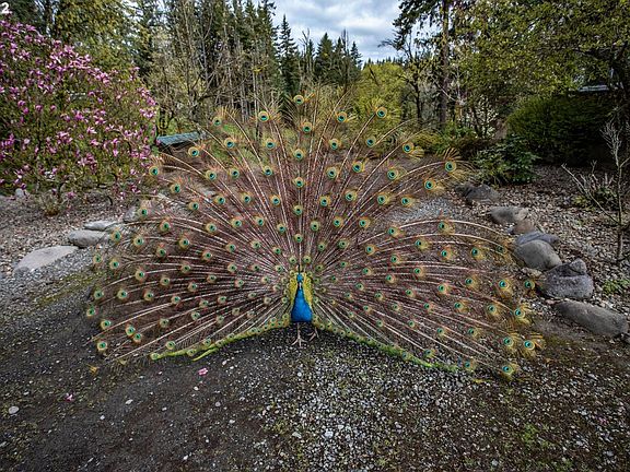 HUGE PRICE ADJUSTMENT!! This home truly has it all! A huge legal guesthouse/ADU space means room for everyone! TWO shop/barn spaces and tons of RV parking means room for everything! A spectacular living room area that is 20+ft high! 3 bdrms + an office with Murphy Bed and built-ins! A primary Bedrm with both a loft over the living rm and a nice new deck looking out to serenity! Multiple heat sources handle winter conditions easily! Even comes with Jerry the Peacock!