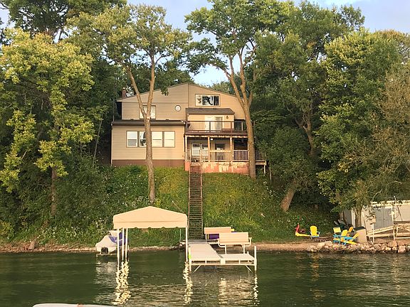 Note: buyer's agents welcome for a 2% commission. Gorgeous multi-level home on Madison Lake with private sand beach (new 2017) and 75 feet of lakeshore facing west so you can see the sunset each night! This 3 bedroom 2 bathroom will make a great family home, or could be weekend retreat for those looking to escape from the city. Some amenities include a large master suite with 3 closets, a spacious living room, two lake-front sun rooms, 2 levels of lake-front outdoor space (one with maintenance free decking), oversized 2 car garage (with lots of storage space above garage), professionally installed Bose surround sound (wires hidden) in living room, new A/c 2017, new boiler heater 2017, 2 bedrooms completely remodeled with recessed lighting and double closet (2018), new garage doors (2017), new custom solar window blinds (2018), and city sewer (special assessments fully paid)! The ample deck and patio space are sure to deliver on summer grill-outs. Dock and boat cover not included with purchase. Come check this lake home out! Note: buyer's agents welcome for a 2% commission.