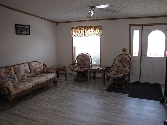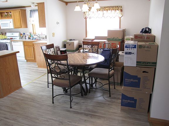 Seller has authorized a huge price reduction!!! Beautiful 3 bedroom, 2 bath home situated in Remington Woods, an adult 55+ community. Ranch style manufactured home with plenty of cabinets in the kitchen and also offers an island w additional storage. Enjoy cooking in this spacious kitchen. Home has plenty of room for a dining room table or a sitting or sewing room. It's the new buyer's decision. Living room is spacious with plenty of room for oversize couches, and furniture. Main floor laundry is convenient to use with a washer and dryer at your fingertips. Home backs to open space which offers plenty of privacy. The detached garage is 25' deep x 21' wide garage. Easily, space for 2 cars plus plenty of storage. This is a home you will find privacy and a peaceful neighborhood. Easy access to the interstate but with none of the aggravation! This is leased land.