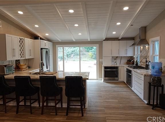 AMAZING SINGLE STORY IN SAUGUS!!! This is the one you have been waiting for. This home has had a complete makeover. The kitchen has been remodeled to an chefs dream with stainless appliances, gorgeous porcelain countertops, new kitchen cabinets & double oven with hood. Home features new tile flooring, new windows, new paint, new decorative wood plank ceiling & tankless water heater. The guest bathroom has been redone as well with granite shower, new tub fixture new vanity and light sconces. The master bath has been opened up to give a true master feel with new tiled shower, new vanity & light sconces. Master closet has been opened up to create a walk-in-closet as well. 2 car detached garage with huge space for possible boat or trailer parking. Huge backyard is all flat and usable and is ready for someone to make it their dream backyard. This home is truly stunning and ready for the pickiest buyer.