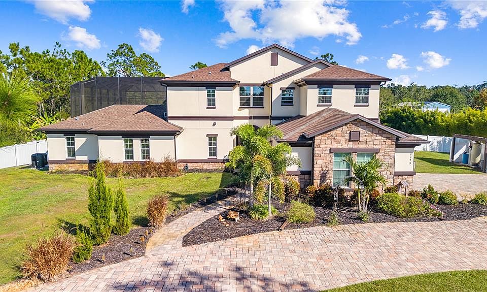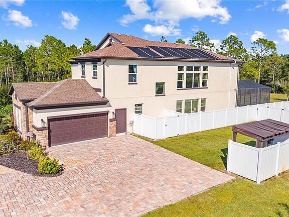 This exceptional multifamily compound offers a gorgeous In-Law Suite with a private entrance and sits on over 3 acres of peaceful, secluded land! Combining modern luxury with rural charm, this rare property delivers two full residences for one incredible price. The main home features 3 bedrooms (two with en-suite baths), 3.5 bathrooms, and an impressive chef’s kitchen equipped with double islands, stunning granite counters, premium stainless steel appliances, and solid wood cabinetry with dovetail and soft-close features. Soaring 25-foot ceilings, dramatic floor-to-ceiling windows, and 18-foot retractable sliders seamlessly blend indoor and outdoor living. Upstairs, a loft and two balconies overlook the resort-style pool and lush grounds. The attached In-Law Suite (“Casita”) is a fully independent second residence, complete with its own kitchen, inviting living room, and 2 bedrooms and bathrooms—each offering direct lanai and pool access. Ideal for multigenerational living, long-term guests, or a private office or gym, this suite provides comfort, flexibility, and privacy. Outdoor living shines with a custom heated saltwater pool and spa under an expansive screened enclosure, surrounded by stone pavers and tropical landscaping. Additional property highlights include a detached garage/workshop with water and power, a dedicated RV pad with full hookups, and a spacious circular driveway. Nearly one acre is already cleared and fenced, while the remaining acreage maintains its natural beauty—perfect for horses, animals, or future expansion. Built with energy efficiency in mind, the home includes foam insulation, a high-foil radiant barrier, three HVAC systems, insulated windows/sliders, a whole-house water filtration system, an irrigation well, and an oversized septic system designed to support additional buildings. Located in Bay Lake Ranch, an equestrian, golf cart–friendly community known for its seasonal events and small-town charm, this extraordinary property offers tranquility just minutes from downtown St. Cloud, Lake Nona Medical City, Orlando International Airport, and the beautiful Brevard County beaches.