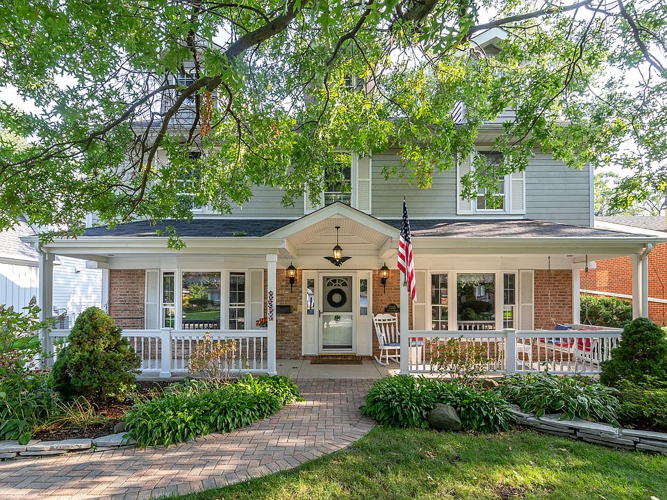 Beautiful oversized two story home in the heart of Glenview. Incredible space in this 4BD/4BA home with multiple living areas. Full length covered front porch welcomes you into the main level - living room/library, separate dining, family room, two full baths and a true chef's kitchen. The renovated kitchen is equipped with custom cabinetry, granite counters, high end stainless appliances (w a full size fridge and separate freezer), walk in pantry, large center island w prep sink. The back of the house opens into a bright 4 seasons sun room overlooking the gorgeously landscaped back yard. The second floor is home to 4 bedrooms, 2 full bathrooms, 2 flex areas and laundry. The large master suite has a private balcony, walk in closet, den/nursery space, bathroom with whirlpool tub, heated floors and walk in rain shower. Additional features include - finished basement with wet bar and fireplace, 3 car garage, hardwood flooring, dual zoned HVAC, and fenced in yard.