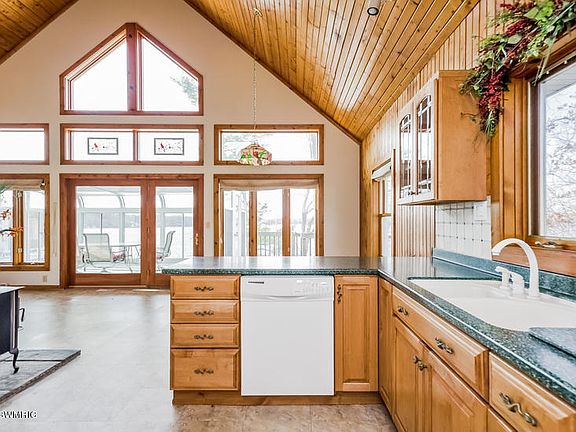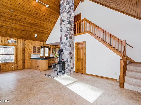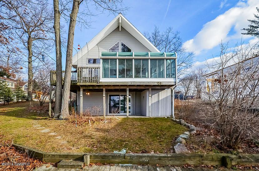 Enjoy the Beautiful Sunsets in this year round home only 30 miles from Downtown Grand Rapids. 50' of Private Frontage on Big Whitefish Lake which is an all sports 600 acre spring fed (rated in the top 10 for cleanliness in the State of Michigan). This 1990, 3 bedroom ,2 bath home has an open floor plan. Cathedral ceiling in the living, dining and kitchen areas facing the Lake plus an attached 3 season porch. A wood burning stove may heat these rooms but there is also a gas forced air furnace in the lower level to heat the whole house. The Updated kitchen has newer appliances and a large walk in pantry. Handicap accessible main floor bath and 1st floor bedroom are very convenient. There are ramps in the garage and the side of the home which could easily be removed. The attached 2.5 stall garage (642 sq Ft) has plenty of storage. The Walkout level has a family room, large bedroom, laundry and storage. The lower level is plumbed for a 3rd Bathroom. Storage shed and dock.
