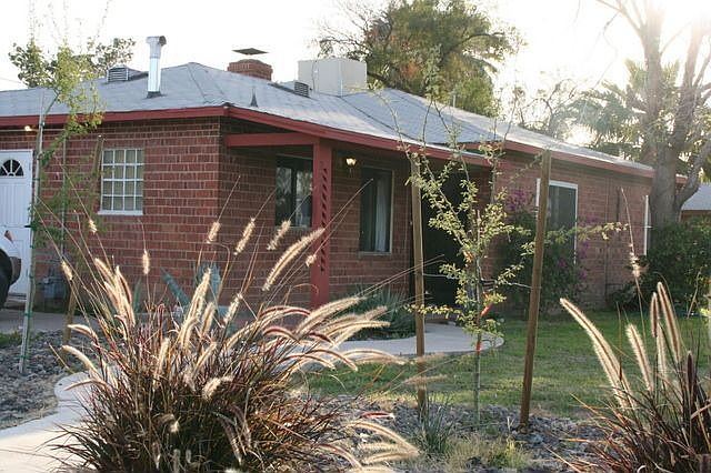 Newly Remolded Classic Red Brick Home on Large Corner Lot. Home features 2 bedrooms, a den and a remodeled bathroom. The great room features a picture window, slate-lined wood-burning fireplace, ceiling fan and pine finish wood laminate flooring. The remodeled kitchen features oak panel cabinetry, thick matte-finish stainless steel countertops, desk workspace area, built-in pantry, island with breakfast bar, Dacor electric convection oven with gas cooktop and Sub Zero oak-paneled refrigerator. Both bedrooms feature toffee-colored concrete floors and the den/office features carpet tiles. The entire home features new windows and doors. The rear yard features a one-of-a-kind custom modern rustic 14' tall ramada with paver patio. Would make a great yard for a garden. This charming home will not last long. This home was listed by Tracey Zemer from Jarson and Jarson.
