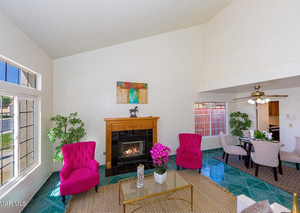 Make your home in peaceful Antelope Valley in this large, sunny four bedroom, three bathroom home. At over 1,700 square feet, the Spanish-style red-roof tiled two-story abode has potential to be tailored to your family's wants and needs.Vaulted ceilings add to an overall spacious feeling with recessed lighting, french doors and plenty of windows creating an open, sunny flow. The ground floor of the home includes custom tile flooring, a living area with fireplace and French doors leading toa large backyard. Adjacent to the great room is a bright kitchen with tile countertops and an abundance of wood cabinets and storage.The second floor bedrooms encompass a master bedroom with a double-sink bathroom suite and two bedrooms with private bathrooms and plenty of closet space--an ideal arrangement for multi-generational family living or a home office. As for outdoor living, a very long covered and finished patio means lots of shaded family and friends time enjoying the beautifulweather. More backyard space around the oversized patio is ready for drought-resistant landscaping, grass, gardening, whatever you prefer. Palmdale is a growing community about an hour's drive from Los Angeles with train service directly to downtown L.A. Near the famou