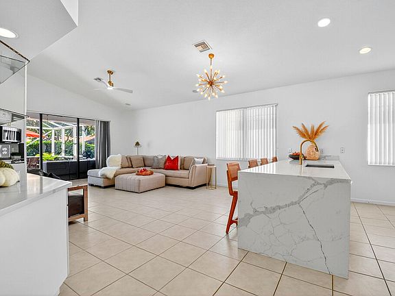 . Quite possibly offering the best lakefront panorama in all of Baywinds, this rarely available 3-bedroom, 2-bath home is a true standout. Ideally situated to capture sweeping, unobstructed views across the wide lake toward the Baywinds Clubhouse, it delivers a setting that feels both serene and spectacular.Inside, the open living and dining areas are filled with natural light, creating an inviting flow that leads effortlessly to the oversized, screened, and covered lanai. This expansive outdoor retreat is perfect for relaxing or entertaining while taking in the breathtaking lakefront backdrop. This stunning residence offers 3 bedrooms and 2 bathrooms in an open layout. The eat-in kitchen is a culinary delight ... The eat-in kitchen is a culinary delight, featuring a dramatic quartz waterfall countertop and picturesque views of the lake. The primary suite boasts a spacious walk-in closet and an ensuite bathroom complete with a shower, soaking tub, and dual vanities.