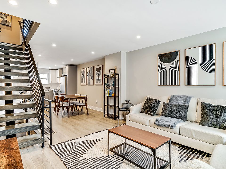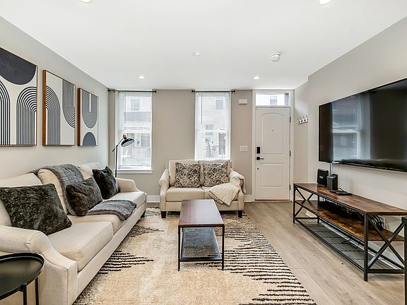Brand new home, just completed! 4bd, 3ba, over 2,800 sq ft in Point Breeze built by custom home builder Lily Development. Can include furniture for additional cost!! This home is 3 stories with a finished basement (4 floors) and 3 outdoor spaces (roof deck, master bedroom balcony, and patio) and custom designed finishes throughout. Enter into your home with an open floor layout with plenty of space for entertaining, ample room for a formal dining room, living room, breakfast nook, and kitchen. Stunning kitchen with two toned kitchen cabinetry, over-sized quartz countertops. Floating steel steps leads to the second floor which includes two ample bedrooms a large full bathroom, a double-bowl sink vanity, and tub. On the third floor you've entered the beautiful master suite with voluminous light coming from all directions. The master bathroom is completely outfitted with his and her sinks, stand alone soaking tub, and separate glass enclosed shower, you'll feel like it's a day at the spa. The master bedroom includes a walk in closet with a balcony off the bedroom. Just outside of the master bedroom there is a wet-bar with sink, mini-fridge, and cabinetry. Follow the steel spiral stairs upstairs to the roof deck with 360 degree views of the city. A great space for entertaining and enjoying the city views! Full sized washer and dryer located in the basement next to the living room and lower level bedroom and full bathroom. Over sized layout, wide open spaces, large rooms with tons of closets. Easy walking to public transportation, Center City, University City, the area's hospitals, and Passyunk Square. Ideal location and free parking on the street. Includes a video camera at front door, and security system that can be hooked up to your phone. Fully furnished apartment (can come with or without furniture). (Fully furnished apartment rents for $4,000/ month) Lease Terms: First and security due at signing. No smoking allowed or fire pits allowed on premises. No parties over 10 people permitted in house. Option to extend 1 year from end of lease. Utilities: Renter responsible for gas and electric. Water fee: $65/ month. Pet Policy: Up to two pets permitted. $400 pet security deposit, refundable upon move out. $30/month per pet, pet fee. Screening criteria: credit score, criminal background check, and past rental history.