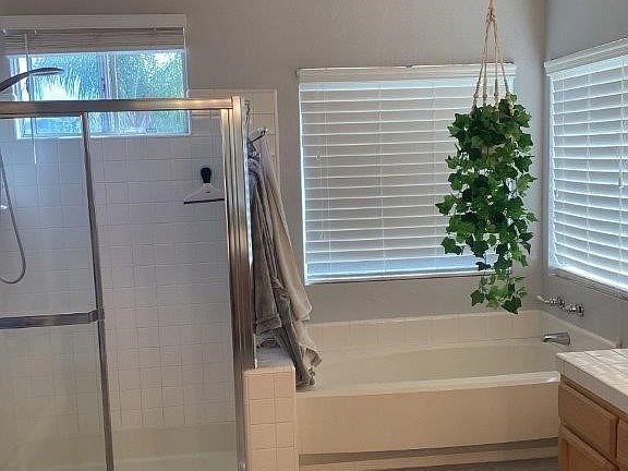 This beautiful single-family home is nestled in the highly sought-after South Corona Wild Rose Ranch community. The open floor plan offers a spacious and inviting living space, perfect for both relaxation and entertainment .Four Bedrooms, Three Bathrooms: The home boasts four bedrooms, including a luxurious master suite with a double vanity and a full bathroom. Additionally, there's a convenient bedroom and full bathroom on the first floor.