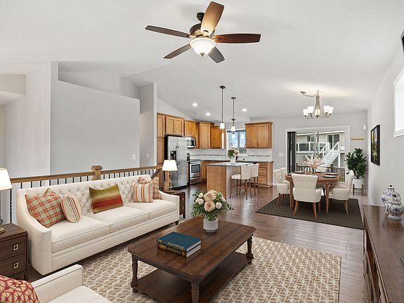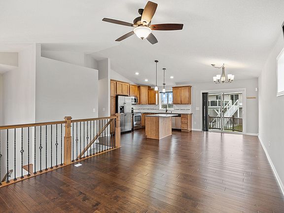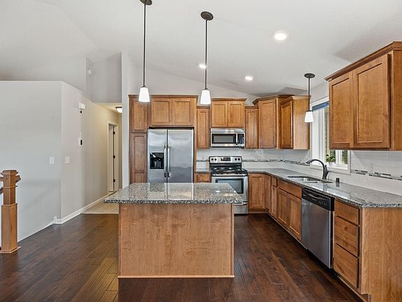 Set on a quiet cul-de-sac, this 5-bed, 3-bath home combines modern upgrades with thoughtful design. The main level hosts three comfortable bedrooms, including a private owner’s suite with a walk-in closet and tile-floored bath. The spacious kitchen stands out with granite counters, a center island, maple cabinetry, and stainless steel appliances. The lookout lower level is made for fun and relaxation, featuring a roomy rec area and a warm stone fireplace. Enjoy outdoor living on the large maintenance-free back deck overlooking a connected paver patio and a fully landscaped yard with irrigation. A 3-car garage provides plenty of storage and convenience. A fantastic opportunity in an excellent location.