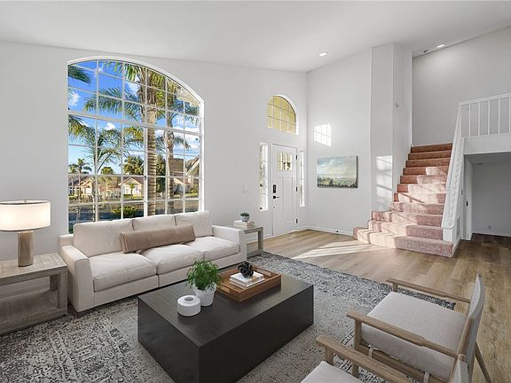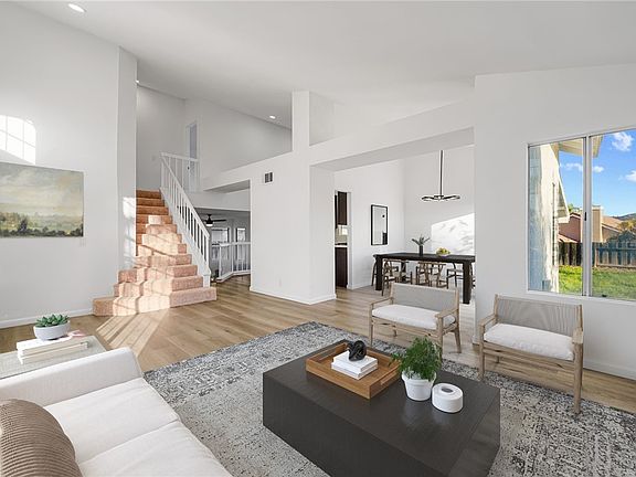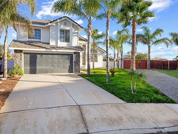 Beautiful home features spacious 1,559 sq ft of living, three bedrooms, two and half baths on a good size corner lot 9,583, sqft in a CUL-DE-SAC. Some upgrades have been done including NEW laminate floor throughout, NEW ceiling fans, NEW carpet in the bedrooms and stairs, NEW kitchen cabinet with NEW Quartz countertops, all NEW stainless-steel appliances, sink, recessed lighting, and fixtures. This home has a family room with a cozy fireplace and lots of natural lighting. The bathrooms have new vanities, showers, and new fixtures. New interior and light exterior paint was done. This home has a beautiful balcony overlooking the backyard area, a two car garage with separate driveway for RV/boat parking. Home offers a lot of palm trees in the front yard with nice grass front and back yard including a covered patio with good size concrete perfect to relax, entertain guests, host family barbecues; huge storage in the backyard. Close to the 15 freeway.
