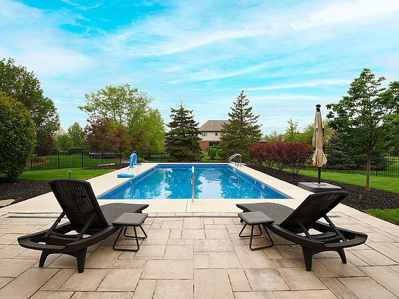 Welcoming covered, lit front porch overlooks lush landscaping...perfect for quiet morning cups of Joe; but the backyard is where you'll love to call home! In-ground 6 ft. deep, heated pool with entry steps and automatic cover. Paver patio uniting a covered outdoor entertaining space complete with bar! Still plenty of fully fenced yard for a swing-set or game of bags! Even a garden area around the side for herbs, veggies or fresh cut flowers. Sprinkling system simplifies waterings. When the sun sets, this 2-story is every bit as inviting as the backyard. Entryway offers soaring foyer with views of upstairs loft and formal dining room. Large kitchen with an abundance of cabinetry, quartz countertops, complimenting subway tile backsplash and stainless appliances. Center island with breakfast bar offers a nice splash of color to the space. Adjacent family room with fireplace flanked by windows and tucked away office area. Updated home with gleaming hardwoods and decorative lighting showcased throughout the main level. Laundry room access to 3-car garage complete with cabinets, bench, hooks and shoe storage. 4 upper level bedrooms including a primary ensuite with jetted tub. Unfinished lower level for storage, playroom or expansion if needed. Nearby neighborhood park and fishing pond. The kids want this one! Let's write it up.