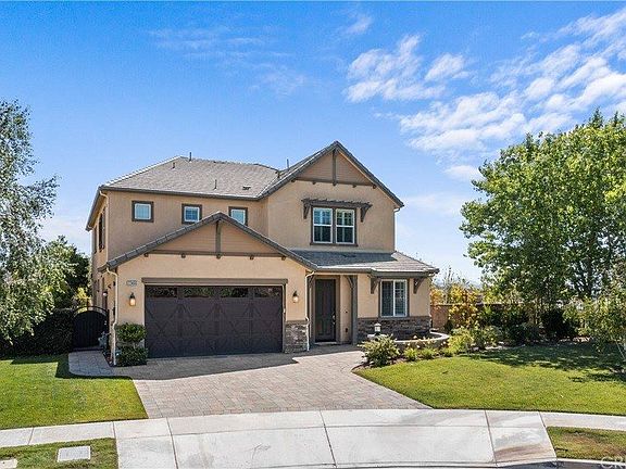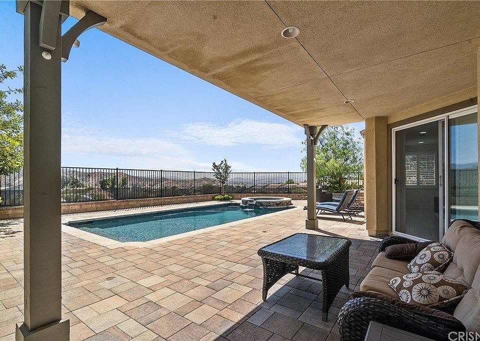 VIEW VIEW VIEW HOME!! Private River Village 6+5 Cul-De-Sac View Home with 2 Beds Downstairs, Loft, 3,900 SQFT of Light & Bright Open Living, Large Lot, Pool, Spa, and Owned Solar!!! This rare end of cul-de-sac location has no neighbors to the right and or behind the home allowing for incredible views of the Valley and a larger front grassy area! The lower level of the home highlights two downstairs bedrooms ( one of which has its own ensuite bathroom ), a stunning formal living room, and or dining that allows an ample amount of space for entertaining! Great room with a fireplace, dining area, and an amazing cooks kitchen with a HUGE island, stainless steel appliances, tons of storage, and custom pendant lighting. Head to the upper level and find the loft, laundry room with utility sink and storage, and three good-sized bedrooms, one with its own private bathroom. The resort-like primary suite features dual sinks, with vanity, a huge soaking tub, and a ginormous walk-in glass-enclosed shower! Enjoy a cup of coffee under your covered patio or the sitting area with the firepit! You will love cooking and entertaining your guests in your custom outdoor kitchen/bar while watching the kiddos or four-legged friends play in the grassy area. 30 mins after you are done eating take a dip in the sparkling pool and spa while overlooking the entire Santa Clarita Valley!!!! The association offers walking paths, a playground, pool, spa, and clubhouse! Don't miss out on calling this beauty your Next Home!!!