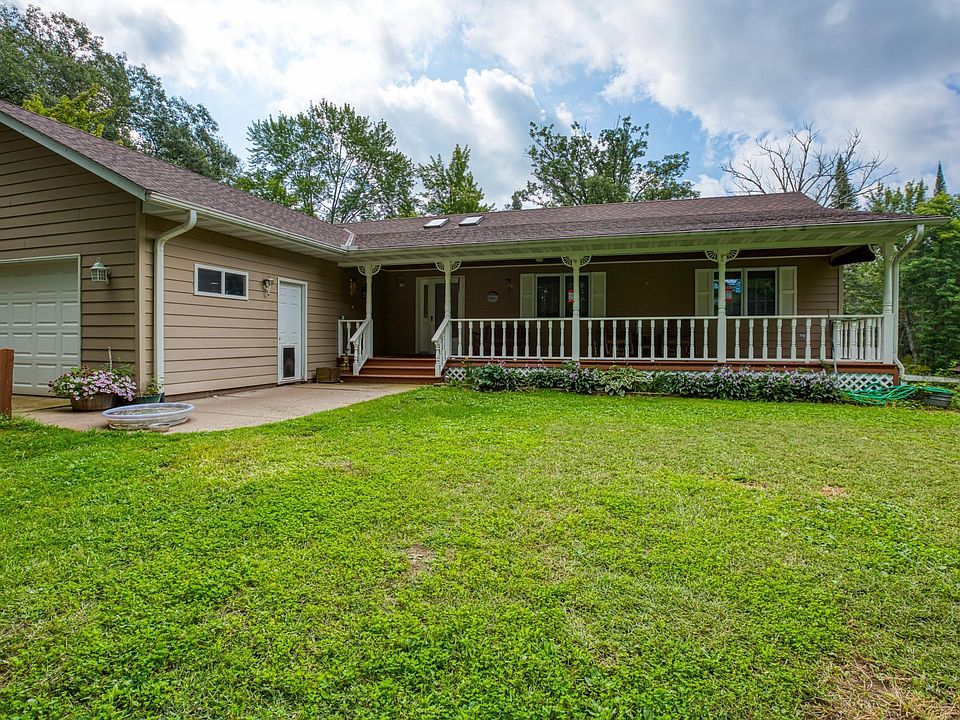Here it is! A 3 bedroom, 3 bath walkout Rambler on 80 acres of country living! Attached two car garage. 30 X 40 pole bldg, 30 X 48 steel frame garage, log cabin for possible sauna, woodshed for wood boiler, 15 X 20 bunk house for extra guests, chicken coup, covered porch on front of house and a deck across entire back of house. Nature surrounds this beautiful property. Vaulted ceiling in living room with a gas fireplace. Eat-in kitchen with patio doors to the deck. Main floor laundry room with 1/2 bath. 3 bedrooms on main floor. Primary bedroom has walk-in closet, newly remodeled bath along with patio doors to the deck. Large steel framed 30 X 48 4-car garage, 30 X 40 pole building, wood shed, log cabin and a bunkhouse. 2 miles to Snake River State Forest.