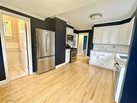 Welcome home to 2247 Barrington Rd in University Heights! This beautifully renovated 3-bedroom, 1 ½ bath colonial seamlessly blends modern amenities with classic charm. As you step inside, the timeless elegance of solid hardwood floors flow throughout the first level. The spacious living room is filled with natural light from its numerous windows and features large built-in cabinets, creating an inviting space perfect for relaxation or entertaining. The updated kitchen boasts marbled gray & white countertops, subway tile backsplash, stainless steel appliances, and updated half bath. Completing the main floor is a bright & charming dining room with built-in cabinet space and double windows, ideal for hosting memorable meals. Upstairs, you’ll find three generously sized bedrooms with new carpet and ample closet space, as well as an updated full bath. The second floor also features a delightful three-seasons room, perfect for enjoying morning coffee or a peaceful evening retreat. For added versatility, the finished 3rd floor provides an excellent space for a home office, playroom, or even a 4th bedroom. The finished basement is another highlight, offering additional living space, laundry area with a washer & dryer, and abundant storage options. Outside, the home’s generously sized yard provides plenty of space for outdoor activities, gardening, or enjoying a private dinner for two on the cozy patio. The detached two-car garage and resurfaced paved driveway add convenience & practicality. Additional updates include energy-efficient new windows and newer roof. Conveniently located near University Circle, this home offers easy access to museums, hospitals, universities, and the renowned Cleveland Clinic main campus. The neighborhood’s sidewalks and proximity to excellent shopping & dining make it a perfect location for any lifestyle. Don’t miss this opportunity to own a home that offers exceptional value, convenience & modern charm—schedule your showing today!