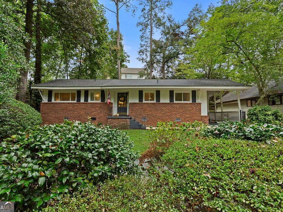 Welcome home to this updated brick ranch nestled in a quiet, convenient ITP location just minutes from downtown Atlanta. With 3 bedrooms, 3 baths, and 1,434 sq ft of light-filled living space, this home blends midcentury charm with modern updates. Step inside to vaulted, beamed ceilings, recessed lighting, and freshly refinished hardwood floors. The open floorplan effortlessly connects the fireside family room and dining room, which opens to an expansive back deck-perfect for entertaining or morning coffee in the fresh air. The kitchen is a stunner: clean shaker-style cabinetry, stone countertops, tile backsplash, stainless steel appliances, coffee bar, and a center island with seating for casual meals. The primary suite is oversized, with vaulted ceilings, dual vanities, a step-in tile shower, and a spacious walk-in closet. Two additional bedrooms and baths give flexibility for guests, home office, or a private gym. Beyond the home, you'll fall in love with the lushly landscaped lot and private, fenced backyard-and yes, your own putting green. Carport parking keeps your vehicle covered and convenient. You're not just buying a house - you're buying a location. Walk to Briarwood Park's pool, tennis courts, playground, trails, and community center, all just steps away. And when you crave urban energy, you're only minutes from everything Atlanta offers: restaurants, shops, arts, nightlife, and greenspace.