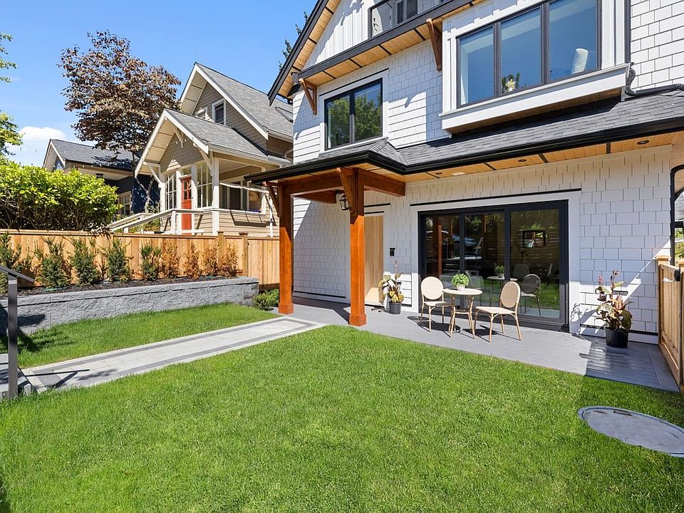 Uptown Group is proud to present this stunning 1728 SF 3 bed, 3.5 bath ½ duplex home located in one of the most desired East Vancouver neighborhoods. The open kitchen features Fisher & Paykel appliances with a built-in coffee bar, quartz countertops and pantry and large island perfect for entertaining your guests. Cozy up to your fireplace while enjoying your favorite music on the surround sound system. The Main floor has a sliding door leading to the private South facing Patio/yard. Peace of mind with the private garage, security system with cameras and 2/5/10 Warranty. Bonus Large Crawl Space for storage. Within walking distance to Lord Nelson Elementary and Templeton Secondary. Open House Nov 8th/9th Sat/Sun 2-4pm