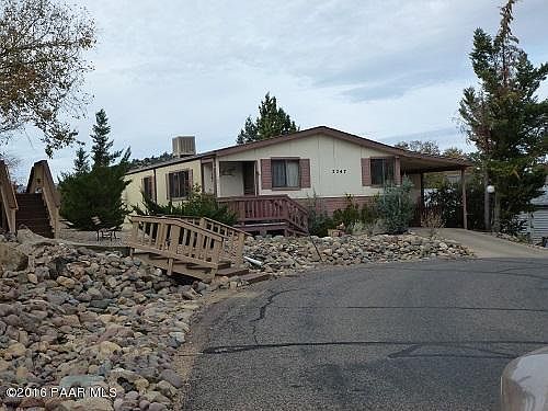 Wonderful Senior Living Community with access to tennis courts, pool and game room. Location is great, close to Prescott and Prescott Valley. One level living and upgrades done to water pipes, water heater, evaporative cooler, roof, flooring and more done in 2010. Corner lot with easy access to the recreation center by the steps right outside the front door. Clean and ready to move in.