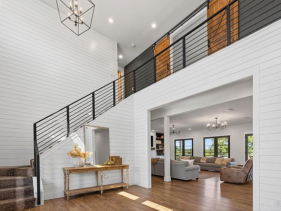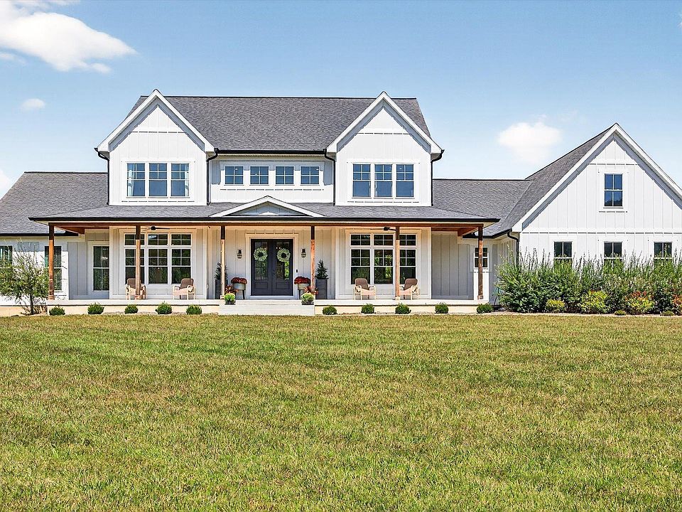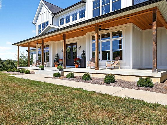 Luxury modern farmhouse on just under 2.5 acres on the desirable southside of Bloomington. This custom home offers 5 BR, 4 Full BA, 2 Half BA! Over 7,400 finished square feet with exceptional design and craftsmanship. The gourmet kitchen includes ceiling-height Amish-built cabinetry, granite countertops, an oversized walk-in pantry with butcher block counters, and commercial-grade appliances including a 48-inch gas range with griddle and double oven, two dishwashers, and a restaurant-size refrigerator and freezer. The main level features 10-foot ceilings in the living room, kitchen, dining room, and office with 8-foot doorways throughout the main and upper levels. Oversized windows provide beautiful country views from nearly every room. The walk-out basement includes a movie room, custom bar with sink, dishwasher, and ice maker, a large living area, and a guest suite. An additional entertainment room with half bath is located above the oversized 3-car garage. Elevated lot with stunning sunset views.