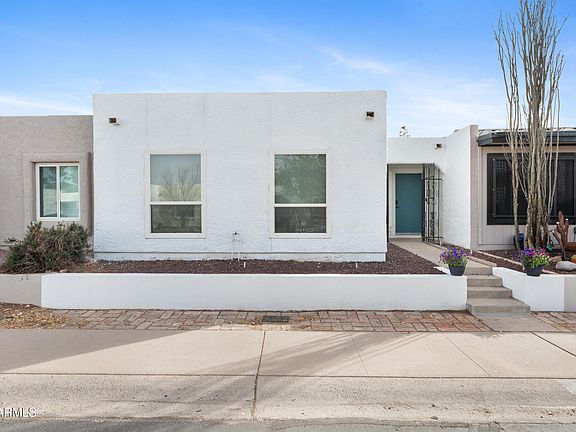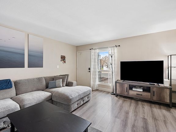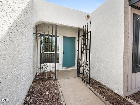 Upgraded Single-Story Townhome in Tempe. Shiplap accents are featured throughout, and the hall bathroom has a custom beadboard ceiling. New bathroom vanities. The kitchen includes stainless steel appliances, custom wood countertops, a glass tile backsplash, a breakfast bar, and space for a dinette. The home has no popcorn ceilings, 5'' baseboards, and updated flooring throughout. A skylight and large dual-pane, low-E windows provide plenty of natural light. Both front and back patios have decorative wrought iron gates, and the back patio includes a laundry room with extra storage. Community features a pool, playground, green spaces, and on-site RV parking. Conveniently located near freeways, shopping, dining, Arizona Mills Mall, Sky Harbor Airport, and ASU.