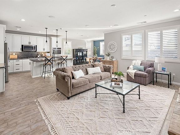 River Village POOL home that lives like a SINGLE STORY, with OWNED SOLAR and NO Mello Roos. This beautifully updated 5-bedroom plus loft, 3.5-bathroom home offers 3,280 sq ft of well-designed living space with a main floor primary suite, two additional downstairs bedrooms, and an open-concept layout perfect for modern living. The home features wood grain tile flooring, designer paint, and brand-new carpet, creating a warm and inviting atmosphere.