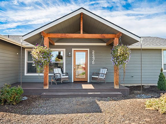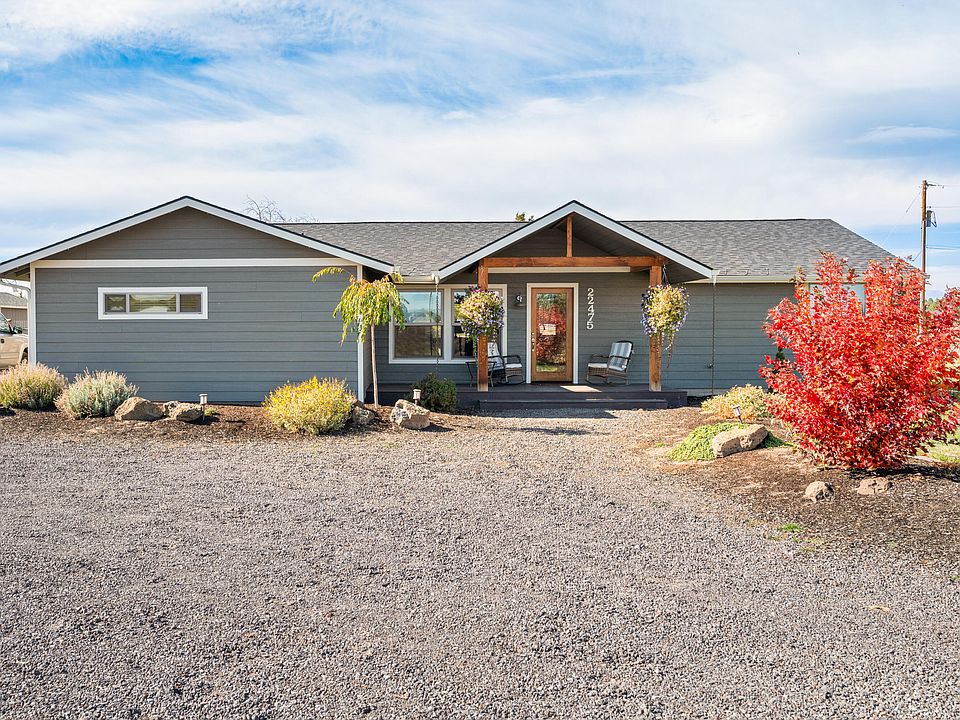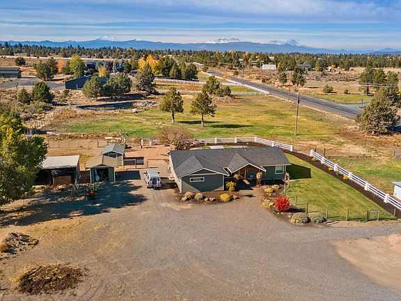 Country Living, Just Minutes from Bend! This remodeled ranch-style home on Bend's southeast end blends modern updates with timeless charm. Inside, refinished softwood floors pair with new flooring throughout, while the kitchen features stainless steel appliances, a center island, and tile countertops. The primary suite includes a walk-in closet and a spacious bath with dual sinks, clawfoot tub, and separate shower. Recent upgrades include a newer roof, siding, windows, doors, composite decking, HVAC, water heater, insulation, and a 300-amp electrical service, making the home move-in ready. Outside, 5 acres offer 3 acres of irrigation rights, a lined and fenced pond with 2hp pump, livestock cover, sheds, and garden boxes. A beautifully landscaped backyard provides a private space for entertaining or relaxing, with Cascade Mountain views as the backdrop. With room for RVs, toys, or a future shop, this property is the perfect mix of space, comfort, and Central Oregon lifestyle.