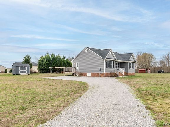 Welcome to 22476 Cabin Point Road a beautiful newer ranch style home on almost 2 acres. This home has a charming covered, front porch large enough to enjoy the peace and quiet. A large, open concept living room greets you and boasts vinyl plank flooring throughout the house. The charming kitchen features custom cabinets, white quartz countertops, and GE appliances. The sizeable primary bedroom with ensuite bathroom also has a walk in closet. The two additional bedrooms both have large closets and ceiling fans and additonal hall bathroom. The rear deck is a great place to enjoy the beautiful weather and dine alfresco! The property also has a large shed with great storage! This house was built in 2019 and is as cute as a button, come see it for yourself!