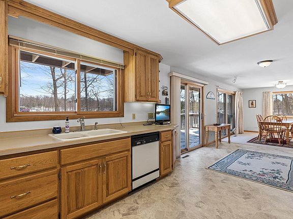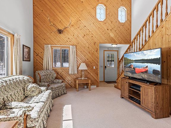 Nestled on a sprawling 1.6-acre lot, this two-story home is tucked away on the serene shores of North Pipe Lake. Inviting living room adorned with soaring ceilings & a charming tongue & groove accent wall. Large kitchen boasts ample storage, with adjoining informal dining space & access to the deck. Completing the main level is access to the attached 2 car garage, & convenient powder room. Retreat to the upper level primary suite featuring a private balcony, an adjoining walk-in closet, & a luxurious three quarter bathroom. Two more bedrooms on the upper level, one with its own private balcony, & only steps from the full shared bathroom. The spacious lower level presents endless possibilities for customization, & is also equipped with a front load washer & dryer. Expansive deck overlooking the fairly flat yard, with direct access to the lake. North Pipe Lake is a 64-acre lake with a maximum depth of 37 feet, offering endless opportunities for water activities and leisurely pursuits.