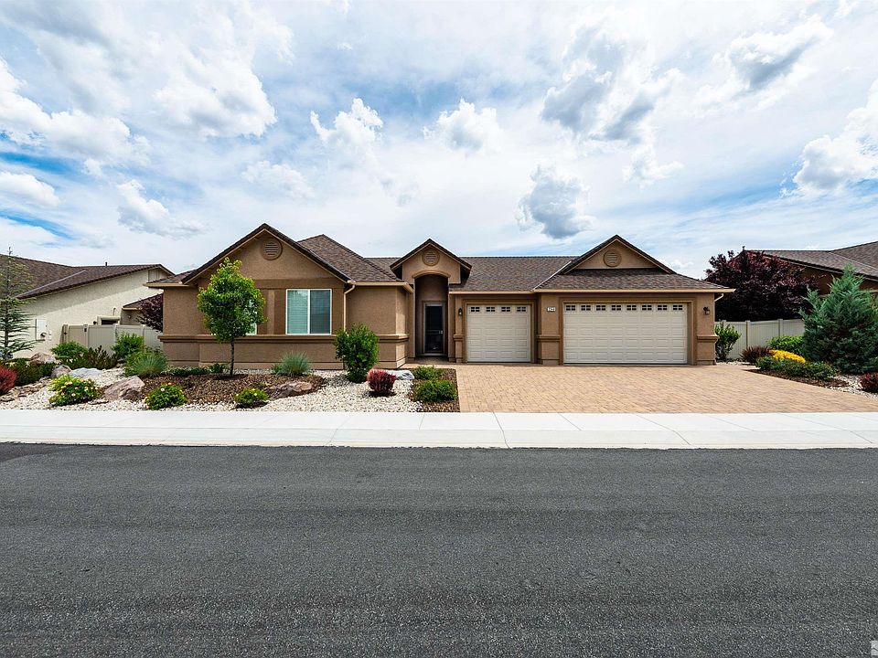 Welcome to this gorgeous and expansive 3 bdrm, 3 1/2 bth, 3 car garage/attic storage, 1-story 2295 sf +/- executive home in Damonte Ranch. Each bdrm features an ensuite bathroom and the den/office easily converts to a 4th bdrm, personal gym or craft room! Experience life with luxury, quality, and convenience with this spacious property. Windows galore with plantation shutters offer privacy while allowing in natural sunlight. Beautiful Mohawk flooring with updated lighting throughout., Cook like a pro in this well-appointed gourmet kitchen with convection oven, abundant counter space and walk-in pantry. Upgrades include granite counters, stainless appliances, and a custom wine bar adjoining the formal dining area with wine rack and refrigerator. Large laundry room with soaking sink, abundant cabinets for storage and LG front load washer/dryer with pedestals. Delight in the magnificent views of Mt. Rose and the nearby Sierra Nevada hillside from the xeriscape backyard with no rear neighbors to obstruct your view. The large, covered patio features a custom built outdoor natural gas grill with generous room for entertaining. The HOA maintains the beautifully landscaped front yard while you enjoy your time relaxing and walking the community trails. Convenient to shopping, restaurants, schools, hospitals, freeway, and Lake Tahoe.