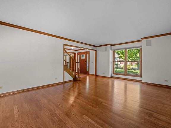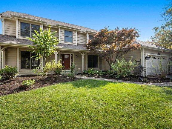 Spectacular updated five bedroom and four full bath with three car garage two story home with welcoming large front porch. Private fenced back yard. Gleaming hardwood floors in foyer, living room, dining room, kitchen, family room, and 1st floor office. Updated gorgeous gourmet kitchen has center island with prep sink, soft close custom cabinets & drawers, full wall pantry with some pull-out shelves, granite counter top, six burner plus griddle G. E. Monogram commercial grade stove top/oven, commercial grade hood, wine cooler, Bosch dishwasher, microwave, and recessed lighting. Large breakfast room has walk-out bay to expansive concrete patio. Spacious family room has vaulted ceiling, skylights, and floor to ceiling wood burning brick fireplace with gas starter. Entertainment size living room and dining room. First floor ensuite 5th bedroom/in-law suite/nanny quarters has walk-in closet and is adjacent to full bath. People who work from home will enjoy the comforts of the first floor office with built in shelves. Luxury primary suite has vaulted ceiling, walk-in closet, luxury updated bath with multi-head walk-in shower, Oasis oval tub with jets, double vanity with quartz counter top. Three additional spacious bedrooms on the second floor are serviced by an updated hall bath with newer vanity with granite and soft close drawers and newer ceramic tile. Finished basement has rec room, office, with newer luxury vinyl tile plus a fourth full bathroom. Concrete driveway. Close to Whalon Lake, parks, shopping, schools, and highways.