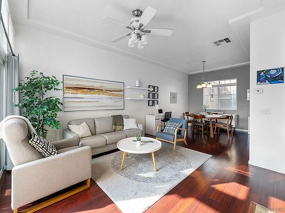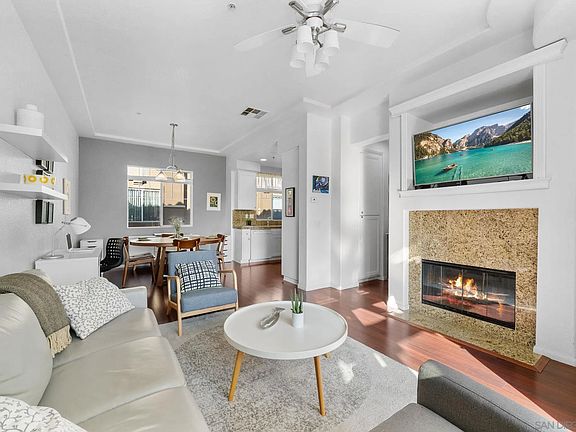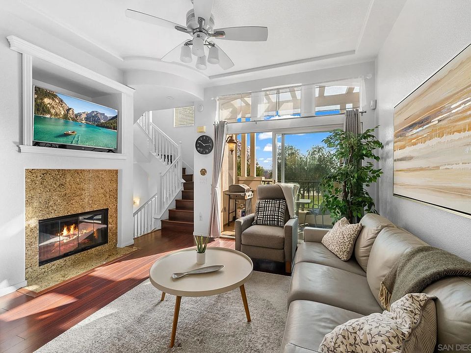 With Liberty Station's world-class dining, shops, parks, and waterfront just outside your Door- This beautifully updated 2-bedroom, 2.5-bath townhome is the coastal retreat you've been waiting for—offering a perfect blend of modern luxury and coastal charm, just steps away from all the action in Liberty Station! Boasting breathtaking views of the Back Bay and downtown skyline, this home is a showstopper. The chef-inspired kitchen features gleaming granite tile countertops and backsplash, complementing the sleek white cabinetry and top-of-the-line stainless steel appliances. Whether you're hosting friends in the expansive, open-concept living space or enjoying a cozy evening by the fireplace, this home is designed for those who love to entertain. Step outside through the sliding doors to your spacious patio and soak in the beauty of the surrounding greenbelt and NTC park. Feel the gentle coastal breeze as you sip your morning coffee or unwind at sunset while taking in peek-a-boo views of the marina and downtown skyline. The primary master suite offers spectacular bay and skyline views with it's own en-suite bath, walk in closet. The second bedroom, also with its own private bath, is perfect for guests or family members. This rare gem won't last long. Schedule your tour today and make it yours before it's gone!