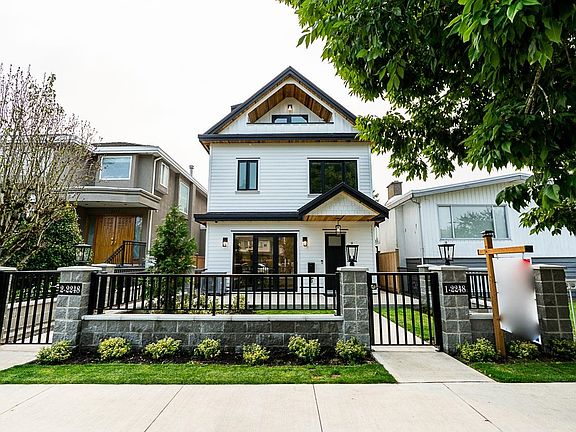 Modern Luxury in Killarney! This brand-new 3-level front duplex features 3 spacious bedrooms, each with own ensuite, & an open-concept layout with hardwood floors, HRV, heat-pump air conditioning, & a modern kitchen with gas stove. Includes in-suite laundry, security alarm with cameras, EV-ready detached garage, and outdoor living with a large front patio with three-panel glass doors plus a covered balcony on the top floor. Backed by 2-5-10 Home Warranty. Walking distance to Kingsford Elementary, daycare, banks, Super 88 grocery, Starbucks, bakery, and restaurants. Close to Fraserview Golf, Killarney Community Centre, shops, parks, and transit. A perfect mix of comfort, convenience, and style in a family-friendly neighbourhood. OPEN HOUSE: OCT 11–12 (SAT/SUN), 12–2PM