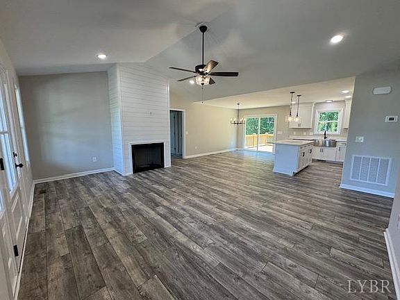 This awesome new construction has 1655 sq ft. on main level and a full unfinished basement with 9 ft walls and full bath rough in for further expansion. Kitchen and baths boast upgraded custom cabinets with soft close drawers, quartz countertops and black fixtures. Nice size pantry for extra kitchen storage. LVP throughout. Primary bath has a spacious tile shower with walk-in glass door. Double vanities in both baths. Enjoy morning coffee on covered front porch and spacious rear deck is perfect for entertaining family and friends. Home is less than 3 miles off of 460 making it convenient to Appomattox, Concord and Lynchburg. Firefly High Speed Internet available. Call for your showing today.