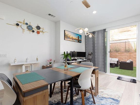 Wonderful location for this great upgraded bright townhome. This two story spacious end unit with no neighbor facing your front door features a spacious open layout with a contemporary upscale Kitchen featuring a large island for breakfast or social gathering. you can appreciate a downstairs bedroom or office with a full bath next to it. Upstairs 3 bedrooms with upgraded carpet including the principal suite with a great walk-in closet. The large private courtyard in the back of your home completes this modern elegance style of living. Assumable Solar system , water softener and alkaline filter included and numerous amenities in the community, pool, park .