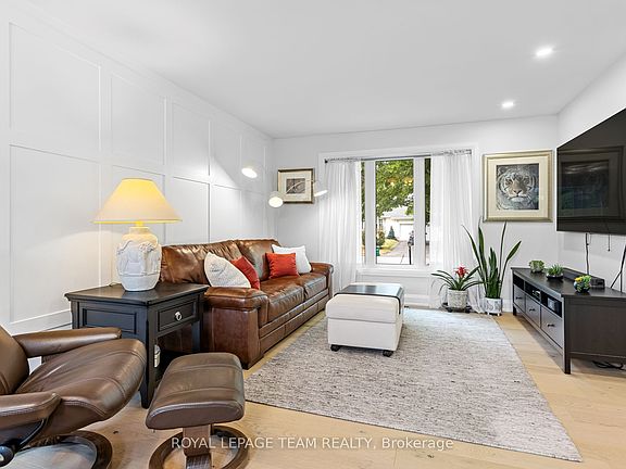 Set on an expansive 20,000+ sq ft lot, this 3+1 bedroom, 3-bath bungalow is nestled in a safe, family-oriented neighbourhood surrounded by mature trees and a new park. Just minutes from all the amenities Manotick has to offer, the home showcases a brand-new, sunlit kitchen at its centre, complete with two-toned cabinetry, quartz countertops, and stainless steel appliances. Freshly updated flooring flows throughout the open-concept living and dining areas, down the hall to three bedrooms, and a beautifully renovated 5-piece bathroom with cheater ensuite access. The fully finished lower level features a spacious rec room with a Napoleon wood stove, a guest bedroom and full bath, plus generous storage space. Step outside to a private, hedged backyard with an above-ground pool, three storage sheds, a greenhouse, and a deck with a gazebo, perfect for entertaining. A convenient main-level laundry and pool change room with sink and toilet adds extra functionality. Parking includes an attached, heated and insulated two-car garage plus room for four additional vehicles in the laneway. See attachments for more details. Septic system maintained annually by Clearstream.