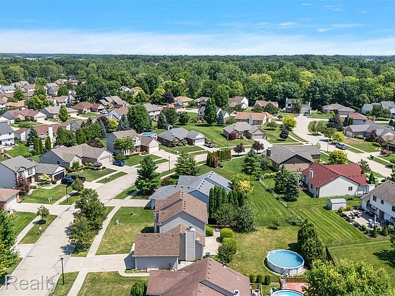 Step outside to your private backyard retreat, featuring a large above-ground pool, patio space, and plenty of room to relax or entertain.