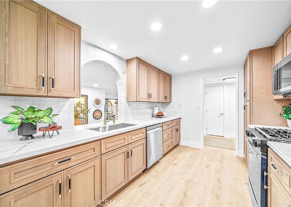 Fully Remodeled Lakefront Retreat with Unmatched Lake Views! Seize this unparalleled opportunity to acquire this meticulously and fully remodeled residence in the highly sought-after, guard-gated Mallorca community, overlooking the pristine waters of Lake Mission Viejo. This is not merely an update but a comprehensive transformation, offering a turnkey, high-end living experience. The entire residence has been expertly renovated, ensuring a seamless blend of modern luxury and tranquil lakefront living. Experience breathtaking, unobstructed lake views from nearly every window, with virtually nothing between your home and the water's edge. The serene setting, framed by mature trees, provides an extraordinary sense of privacy and seclusion rarely found in waterfront properties. Inside, the home has been elevated with premium finishes and an open-concept floor plan designed to maximize light and the stunning scenery. The living and dining areas feature exquisite new wood flooring and light and bright designer paint, both of which continue throughout and into the two spacious bedrooms. With a fully renovated ensuite the primary bedroom has great light and fantastic lake views. A secondary guest bedroom and a fully modeled guest bath complete the indoor living spaces. An expansive, oversized patio, perfect for both sophisticated entertaining and quiet relaxation, overlooks a tranquil open space, further enhancing the home's sense of privacy. With the abundance of all new finishes including all new floors, recessed lighting, new paint, all new stainless-steel appliances and a dedicated 2 car detached garage this home has it all! As a resident of the Mallorca community, you will enjoy exclusive access to a private beach and pool. Furthermore, ownership includes membership to the acclaimed Lake Mission Viejo amenities, transforming every day into a resort-style experience. Indulge in private beaches, docks, boat rentals, fishing, picnic areas, and courts for volleyball and basketball, all complemented by the vibrant social calendar of summer concerts and the spectacular Fourth of July fireworks. A fully reimagined home offering an exceptional, elevated lifestyle. Welcome home.