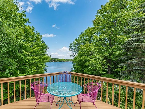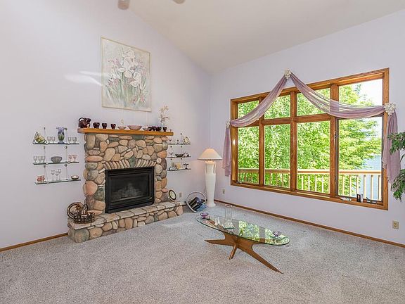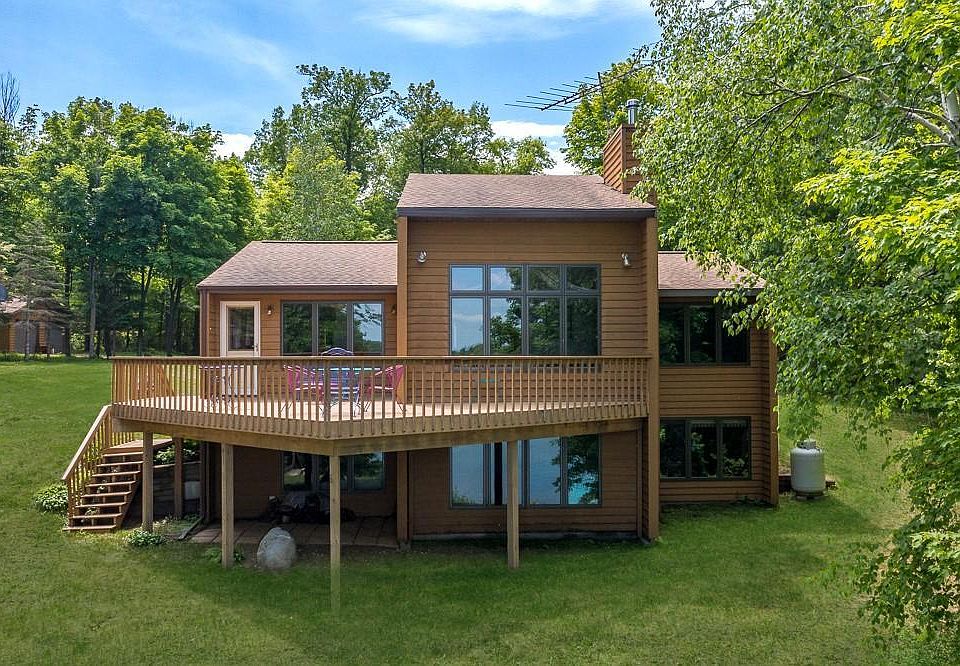 Serenity and privacy abound! Delightful 3BR-2BA Cedar-sided lake home; 4.6 acres; 299' of shoreline on one of the area’s most picturesque lakes boasting great fishing in the heart of LAKE COUNTRY! Fall in love with…mesmerizing lake views from every room; two-story/vaulted living room; gas stone fireplace; bright & cheerful ambiance w/ ample natural light flowing in; large kitchen-abundant custom cabinetry & breakfast bar; lakeside dining area; beautiful hardwood floors; huge lakeside deck…perfect for relaxing and/or entertaining; main floor primary bedroom: walk-in closet & walk-thru bath; walkout lower level:T&G knotty pine-lakeside family room-free-standing wood-burning fireplace-2BRs (one w/ a den) and bath; attached double garage PLUS a 24x32 det. gar. This breathtaking parcel is adorned w/ spruce-oak-birch-maple-white pine…and provides easy walking elevation to the lake…or hop on your golf cart/ATV and take the path down! HIGH SPEED FIBER OPTICS…a perk for those working from home!