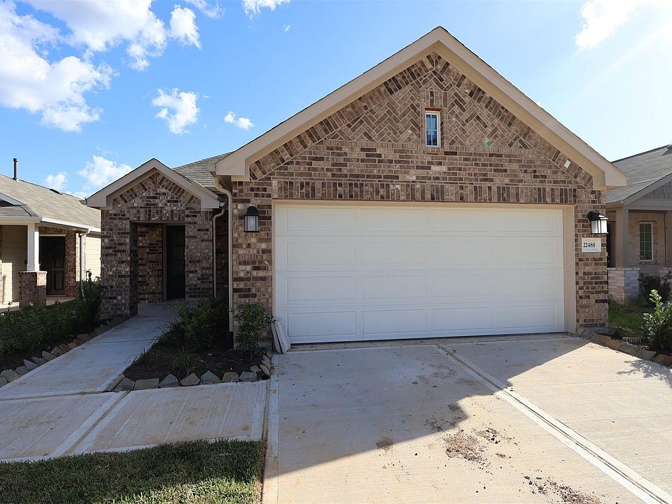 New home in New Caney in the Pinewood Grand at Grand Texas. The Azalea plan is a modern 3-bedroom, 2-bathroom, and 2-car garage home built by M/I Homes, currently under construction and set to be completed in October. The open floor plan connects the living room, dining area, and kitchen seamlessly. The kitchen features sleek countertops, modern appliances, and ample cabinet space. This single-story home spans 1,485 sq. ft. and includes 3 bedrooms, an owner's bedroom with an en-suite bathroom, a luxurious walk-in shower and a dual sink vanity. Additionally, there are 2 more bedrooms that can be used for guests, children, or a home office, providing versatility to suit your needs. Don't hesitate to get in touch with us to schedule a private showing.