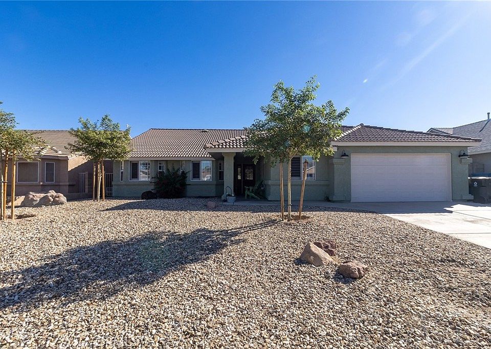 Located in a highly desirable all stick-built community, this spacious 3-bedroom, 2-bath home offers 1,840 sq. ft. of comfortable living with thoughtful updates throughout. The open floor plan features a welcoming living area, a large kitchen with stainless steel appliances, gas stove, upgraded dishwasher, and generous dining space perfect for entertaining. Recent upgrades include: new AC (2 years), interior and exterior paint, refreshed landscaping, plantation shutters, solar screens on front, patio screens, updated light fixtures, and new interior and exterior fans. The property features a spacious yard with a wrap-around covered patio, perfect for enjoying the beautiful desert evenings! Conveniently located near the Colorado River with pride of ownership throughout!
