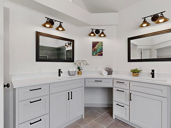 Previous Model Home! Great Drive Up appeal as you pull up to this corner lot. You have never seen ceilings like this in Creek Crossing. Built Ins through out, floor to ceiling fireplace with wall of windows in living for lots of natural lighting, decorators dream color palettes used in all the spaces.. so soothing and clean. Large primary suite and bathroom with double closets and modern finishes. Split bedroom arrangement with two bedrooms on the opposite side with its own full bathroom. But wait until you see the garage.. the tallest garage I have ever seen with built ins on top and side door leading to garage. Lots of parking and large yard, perfect for entertaining or pool! Unique in its own way.. this is not a cookie cutter home. Come see this one today.