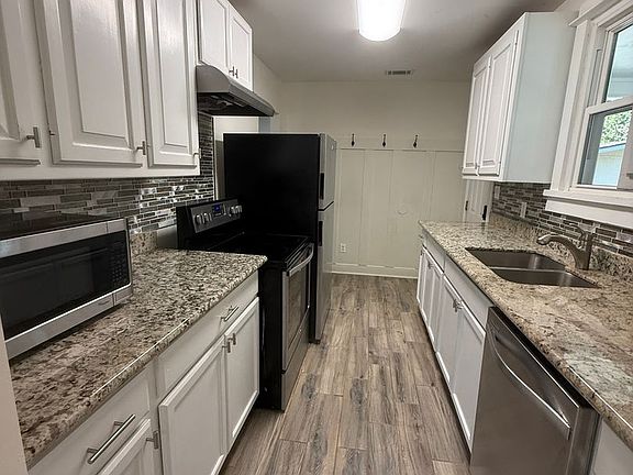 Welcome to the Updated Cottage Home in the Southdowns area of Baton Rouge, LA. This move-in ready gem boasts 4 spacious bedrooms and 2 full bathrooms. The home is beautifully appointed with wood and ceramic flooring throughout, adding a touch of elegance and durability. The kitchen is a chef's dream, equipped with a stainless dishwasher, microwave, and refrigerator, along with a sleek black glass stove/oven. The quartz countertops and custom cabinetry add a modern touch to the space. The home also features ceiling fans for added comfort, and inside laundry connections for convenience. The fenced yard provides a private outdoor space, perfect for entertaining or simply enjoying the Louisiana weather. An outside storage space and a single car carport add to the practicality of this charming home. Experience the perfect blend of comfort and style in this Updated Cottage Home.